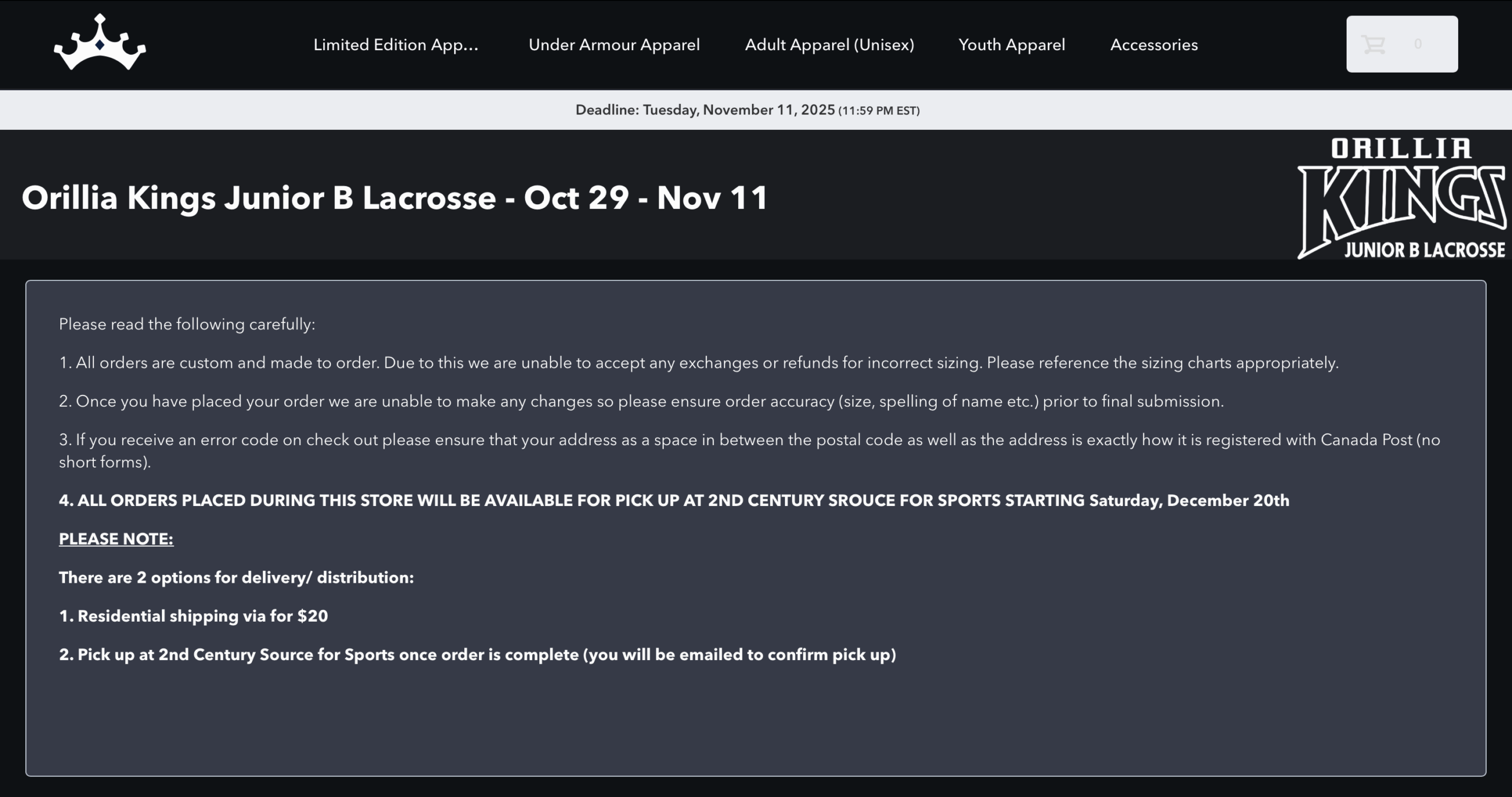 Limited Edition Kings Apparel – Orders need to be placed by Nov 11 and they will be ready for Christmas Click on image below to link to ordering website.